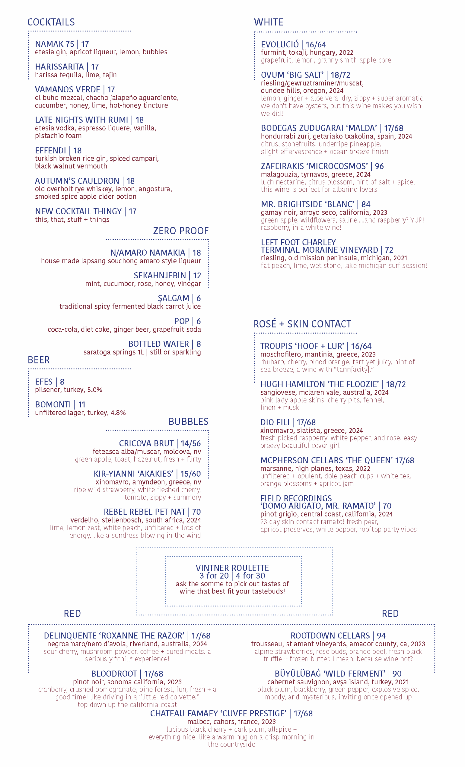 *MENUS SUBJECT TO CHANGE